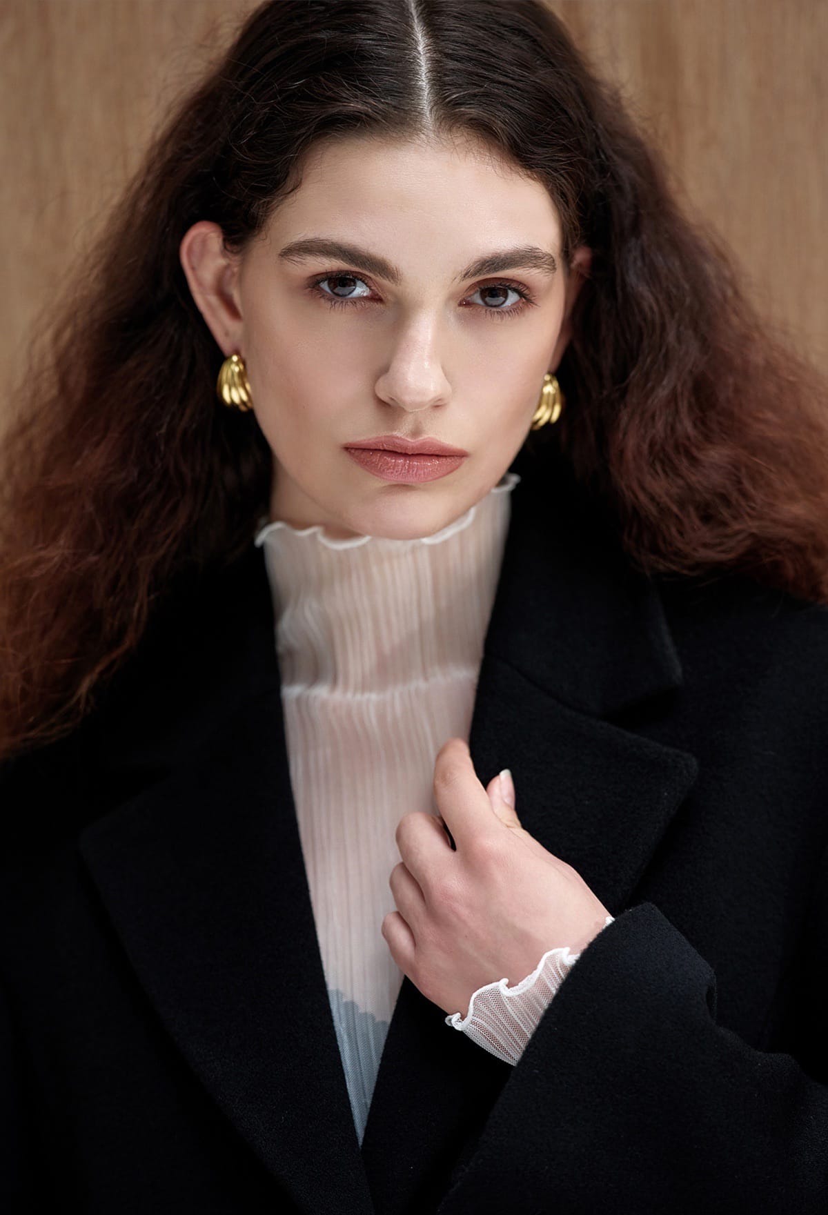 롱 슬리브로 마무리된 우아한 라인은 단품은 물론,