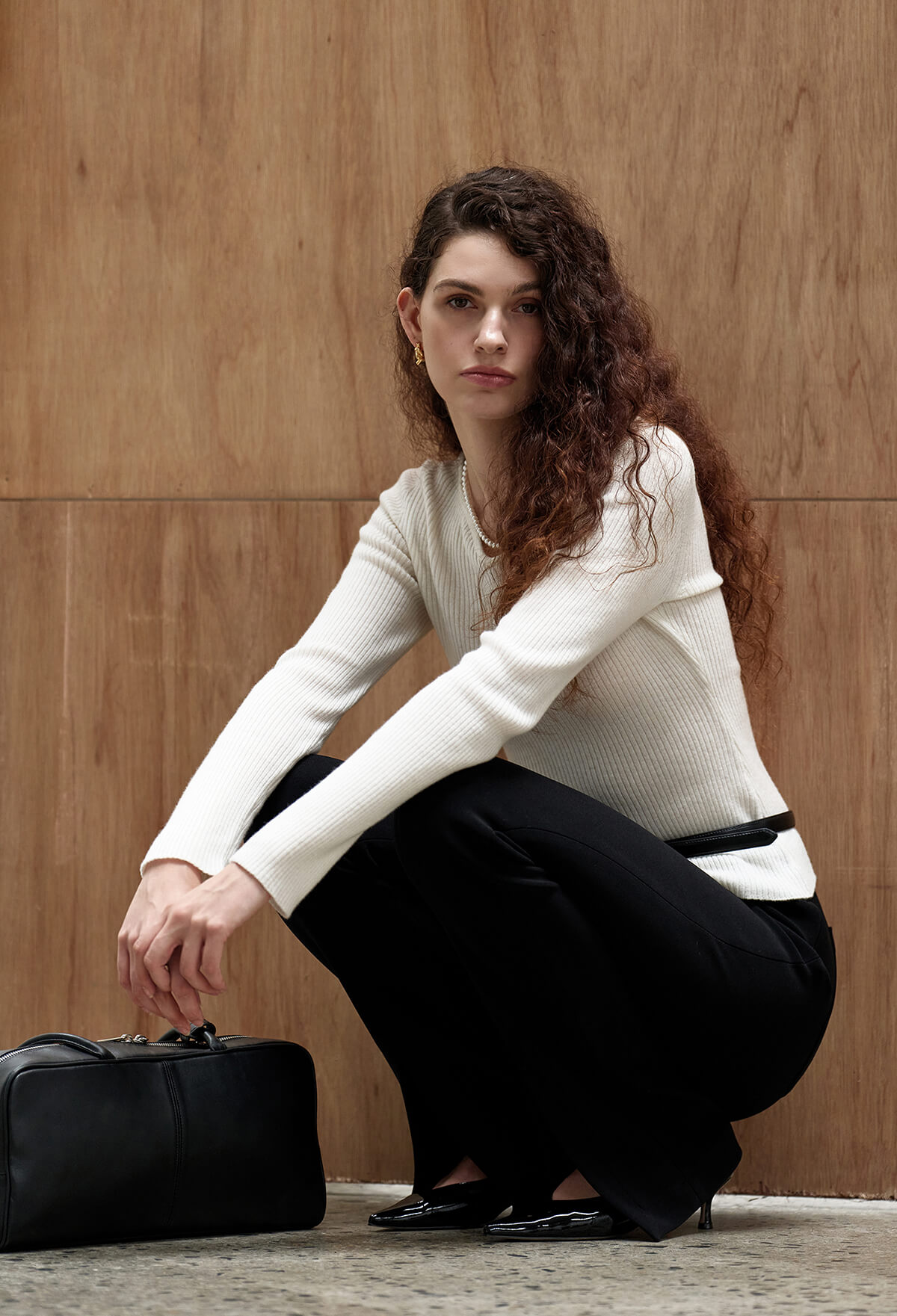 리브 니트 조직 특유의 입체적인 질감이 고급스러움을 더합니다.