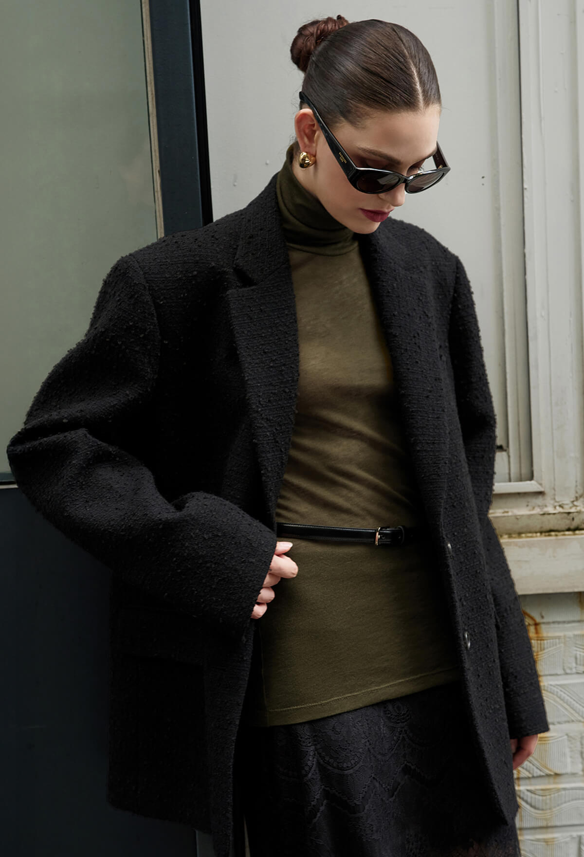구조적인 어깨 라인이 더해져 한층 세련된 존재감을 드러냅니다.
