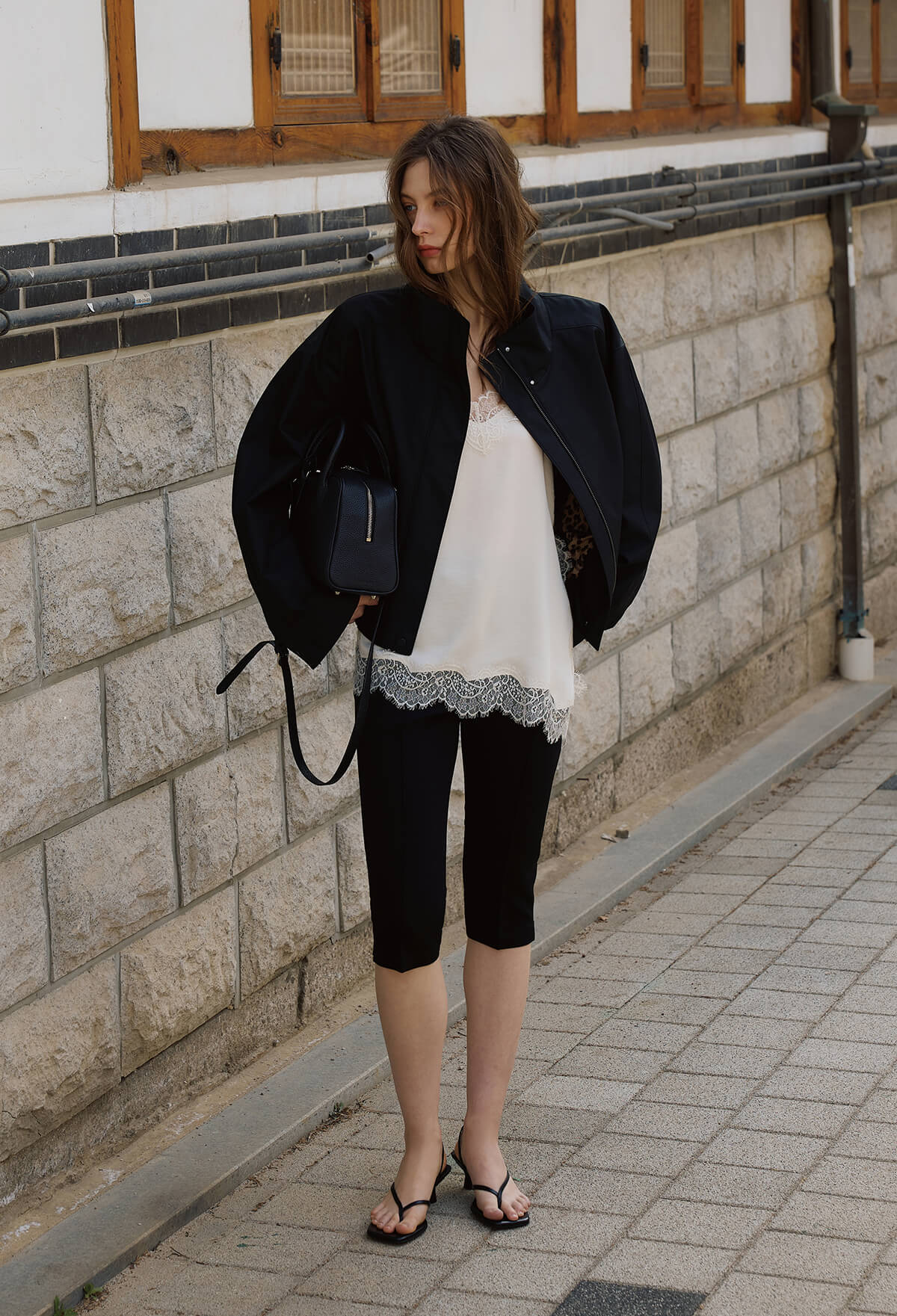 하체 비율을 더욱 균형 있게 보이도록 설계된 크롭 기장이