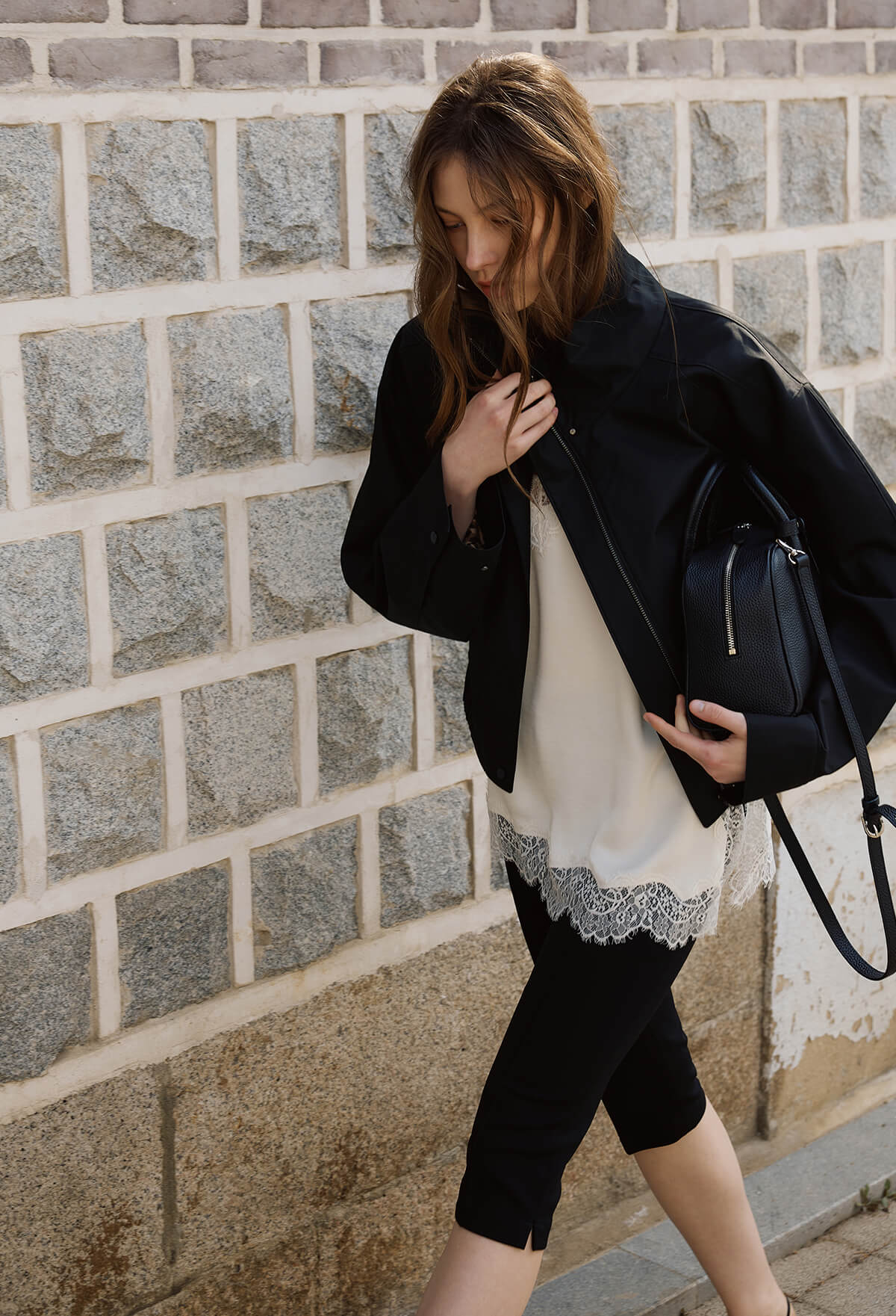 봄버 재킷이나 블레이저 등 다양한 아우터와 매치해