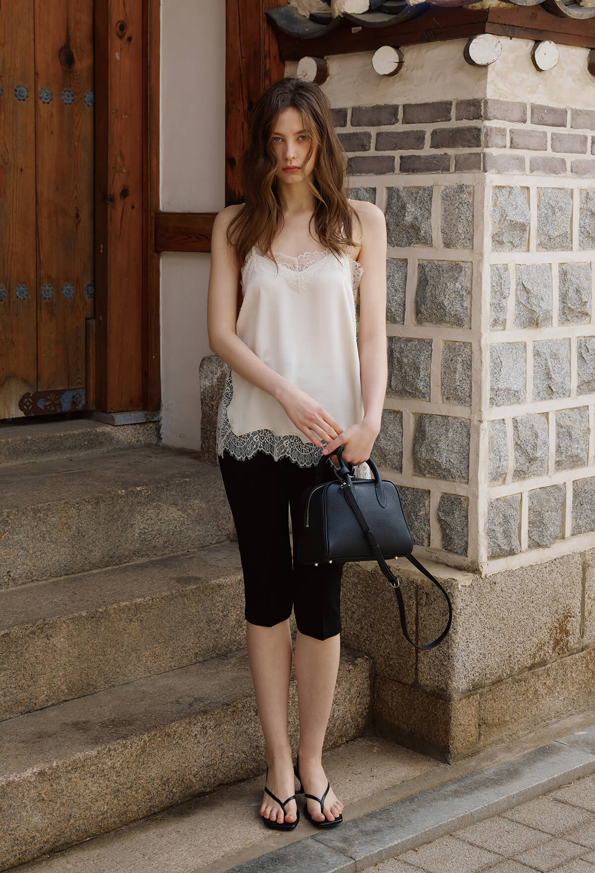 세련된 카프리 기장의 핀턱 슬릿 팬츠는