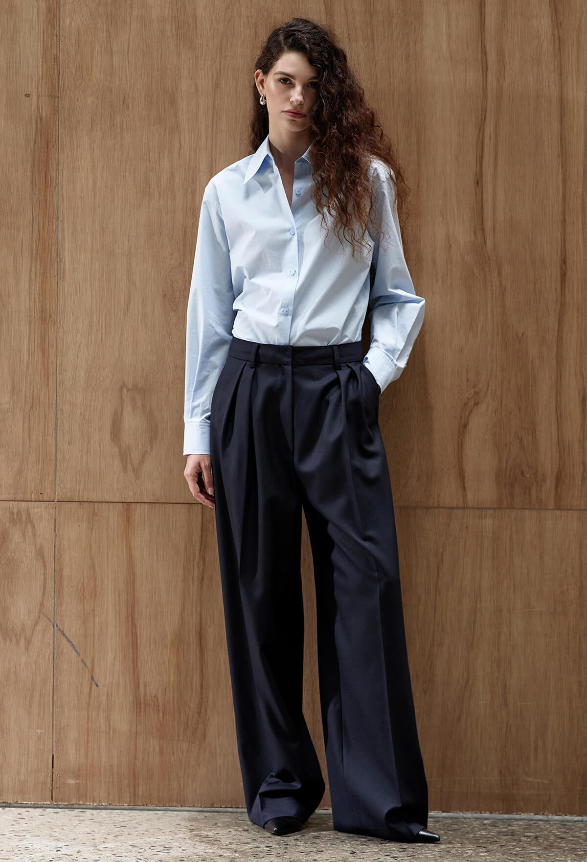 더블 플리츠가 만들어내는 은은한 볼륨감은