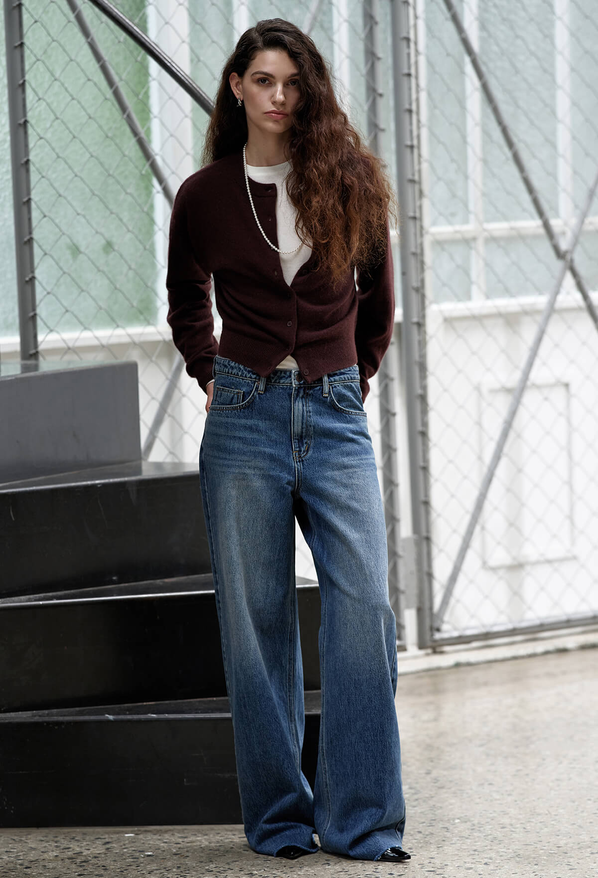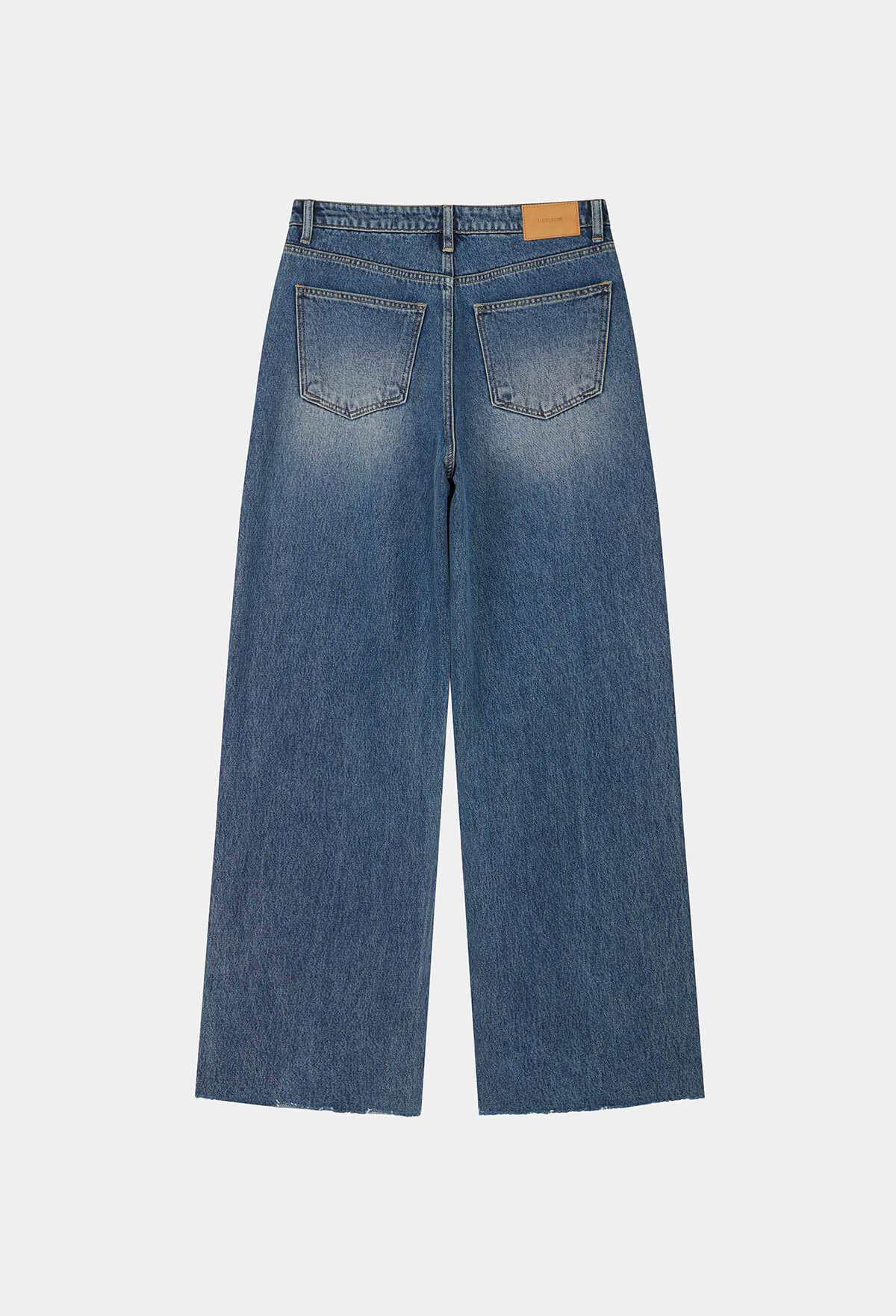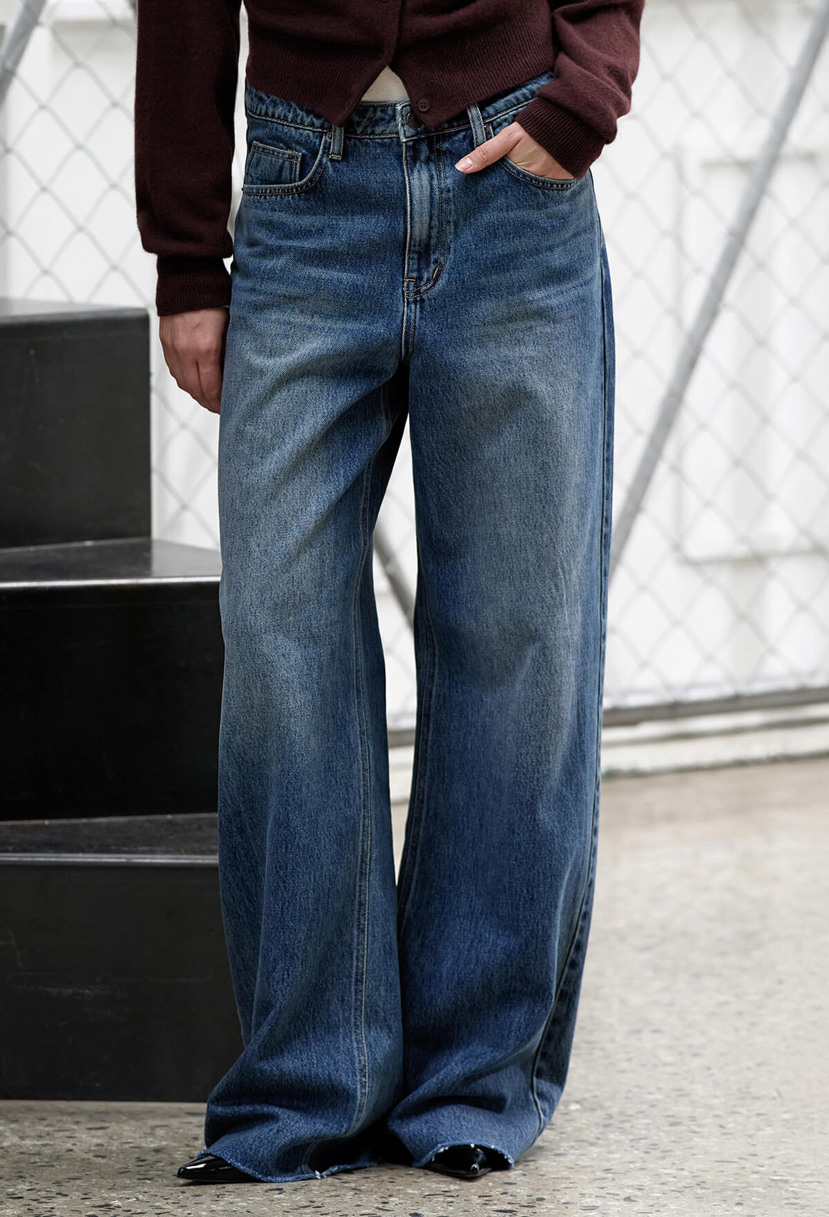 로우 헴 와이드 데님은 트렌디한 와이드 실루엣으로