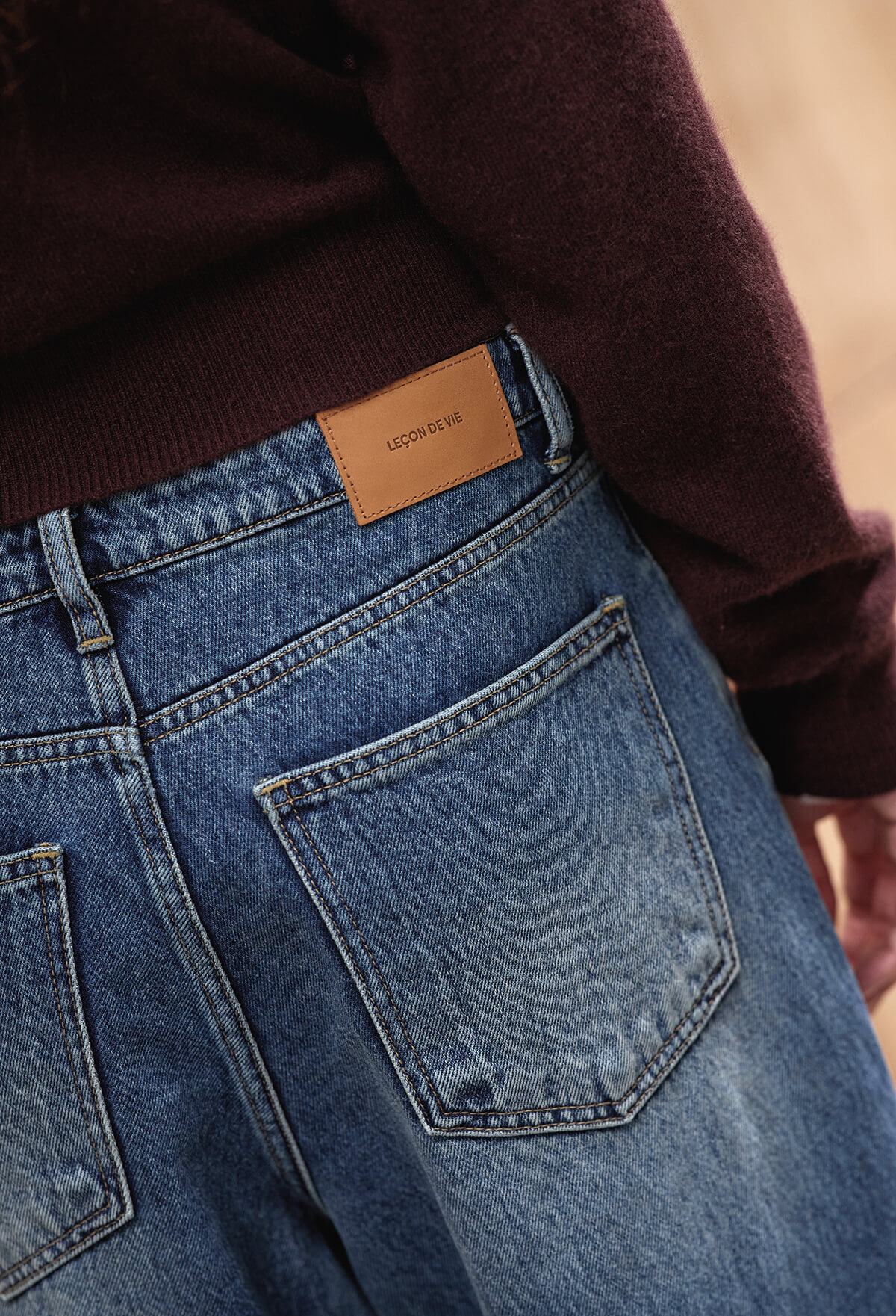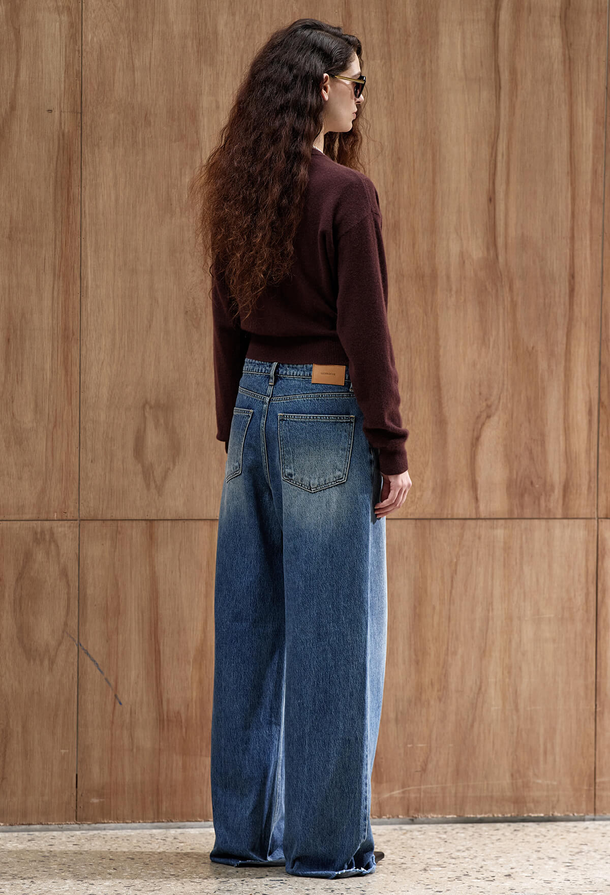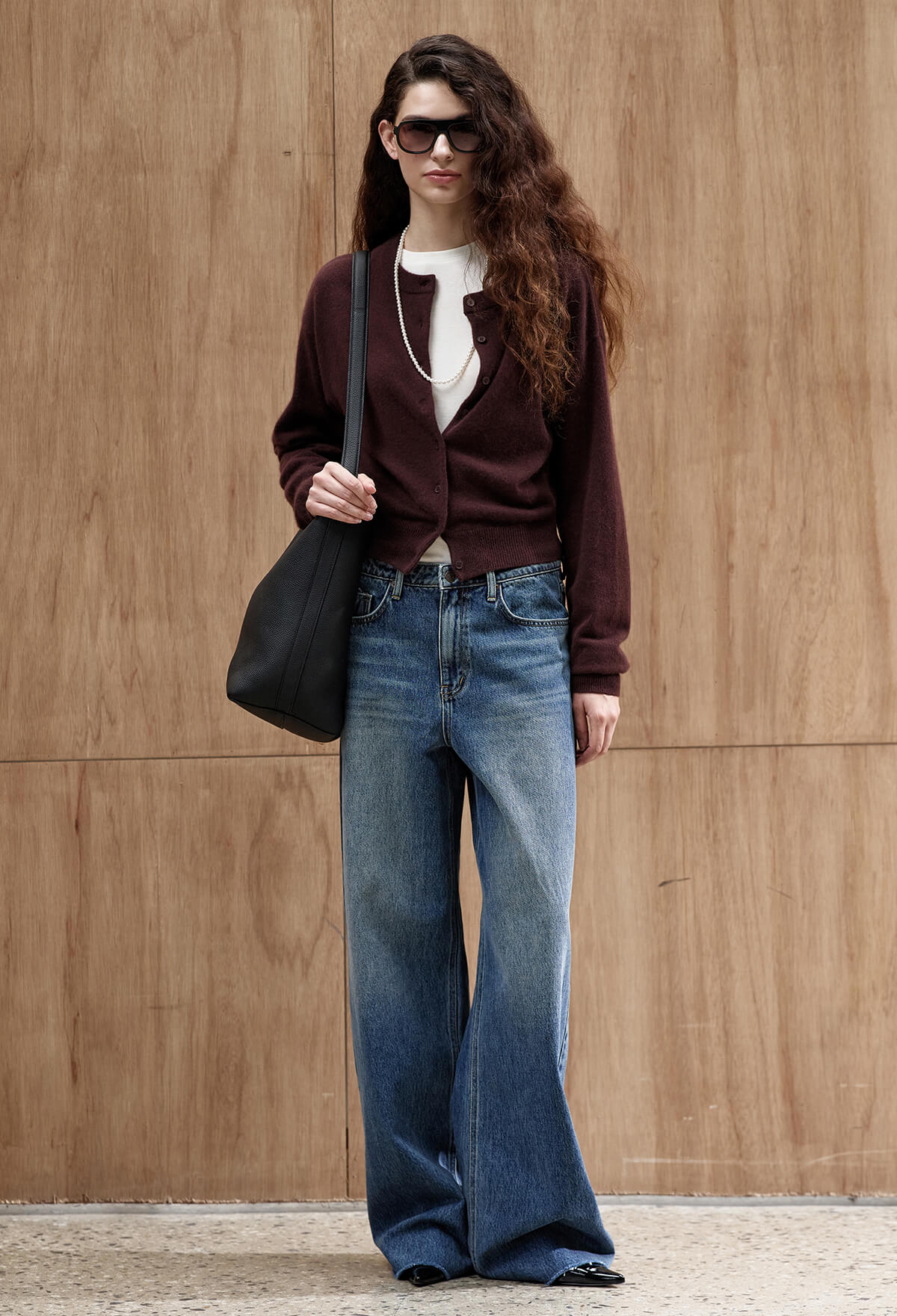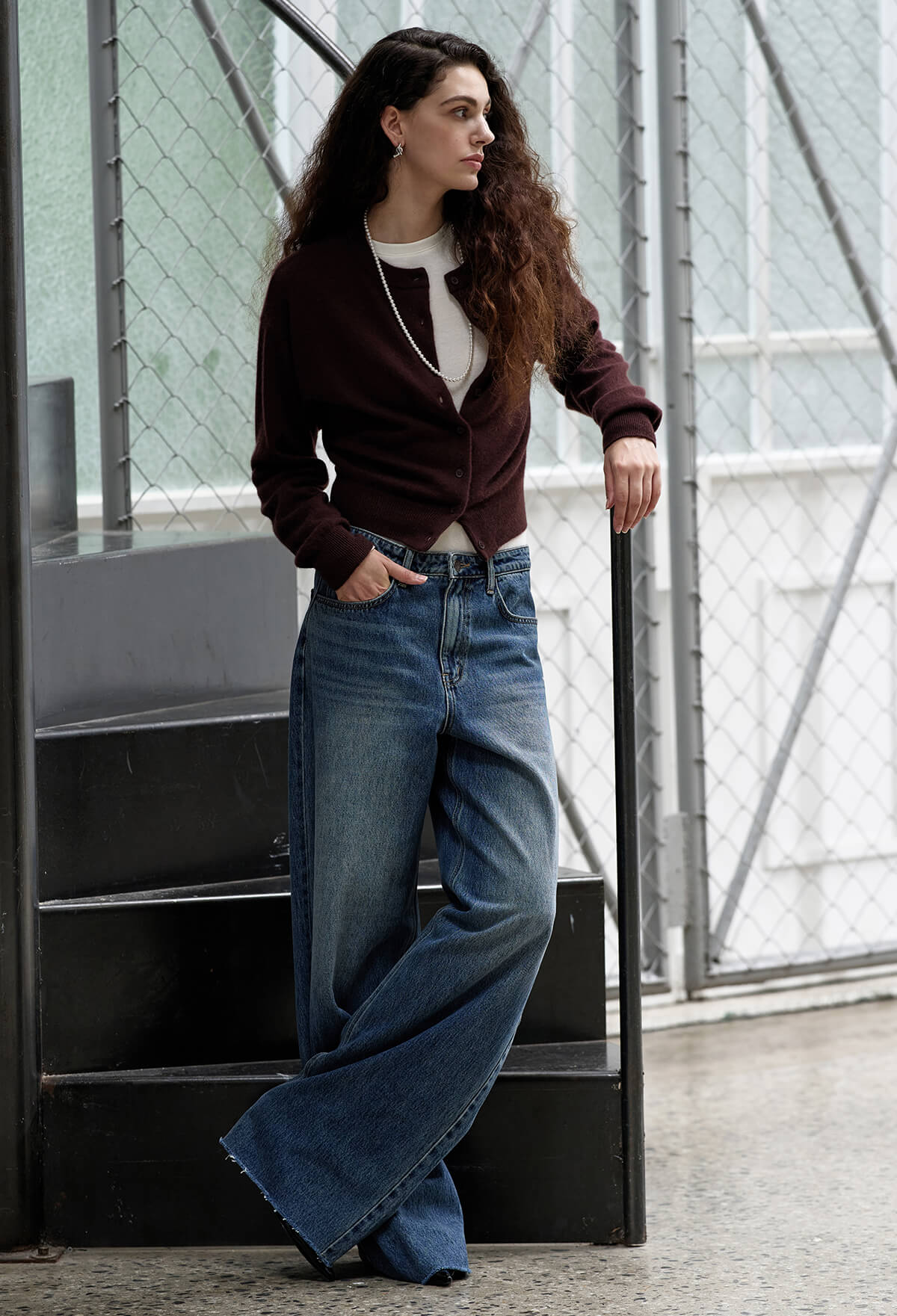 로우 헴 와이드 데님은 트렌디한 와이드 실루엣으로