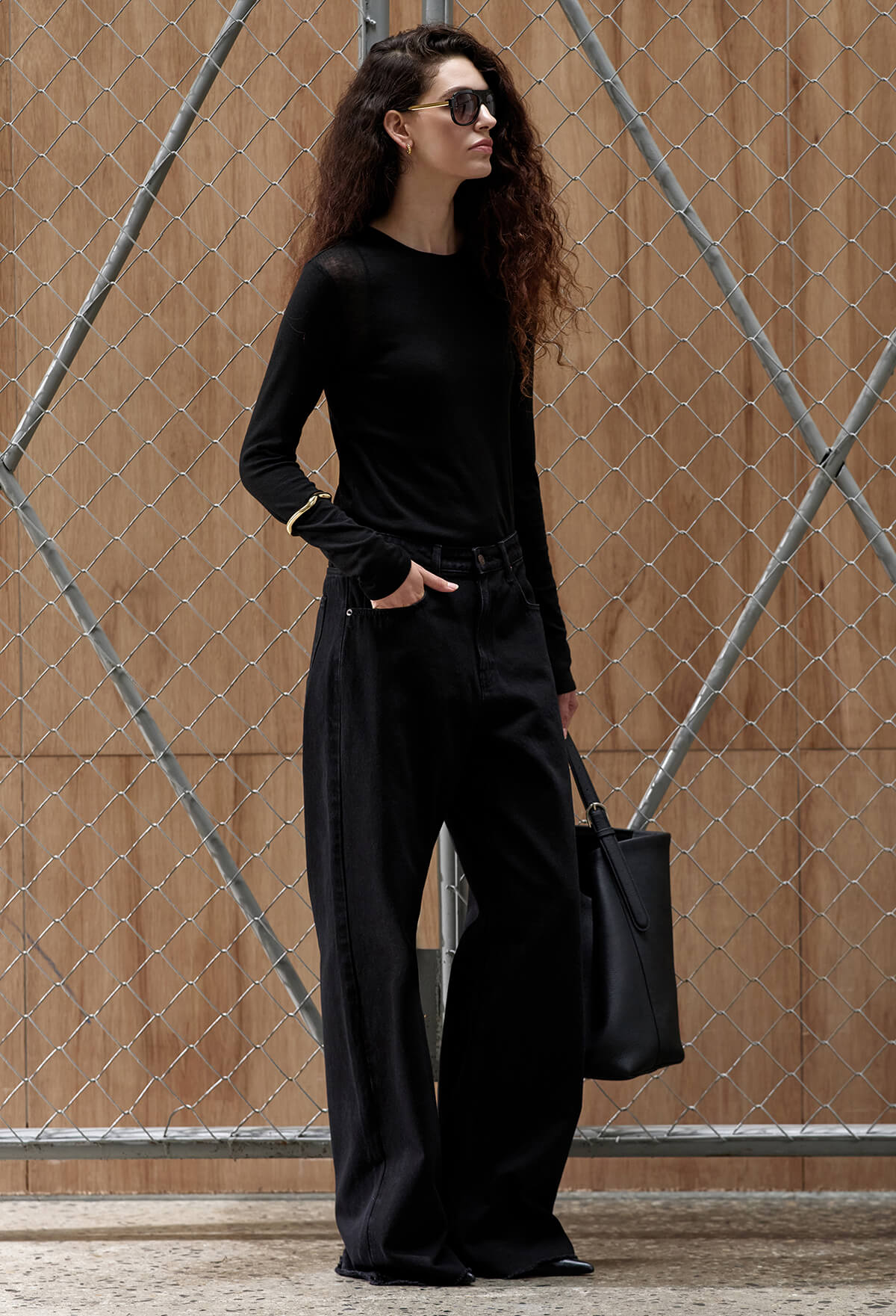 와이드 핏의 볼드함에 미니멀한 디테일이 더해져,