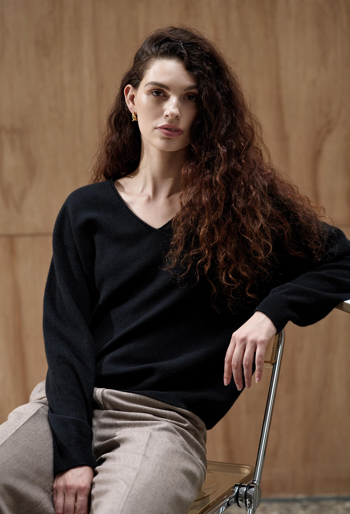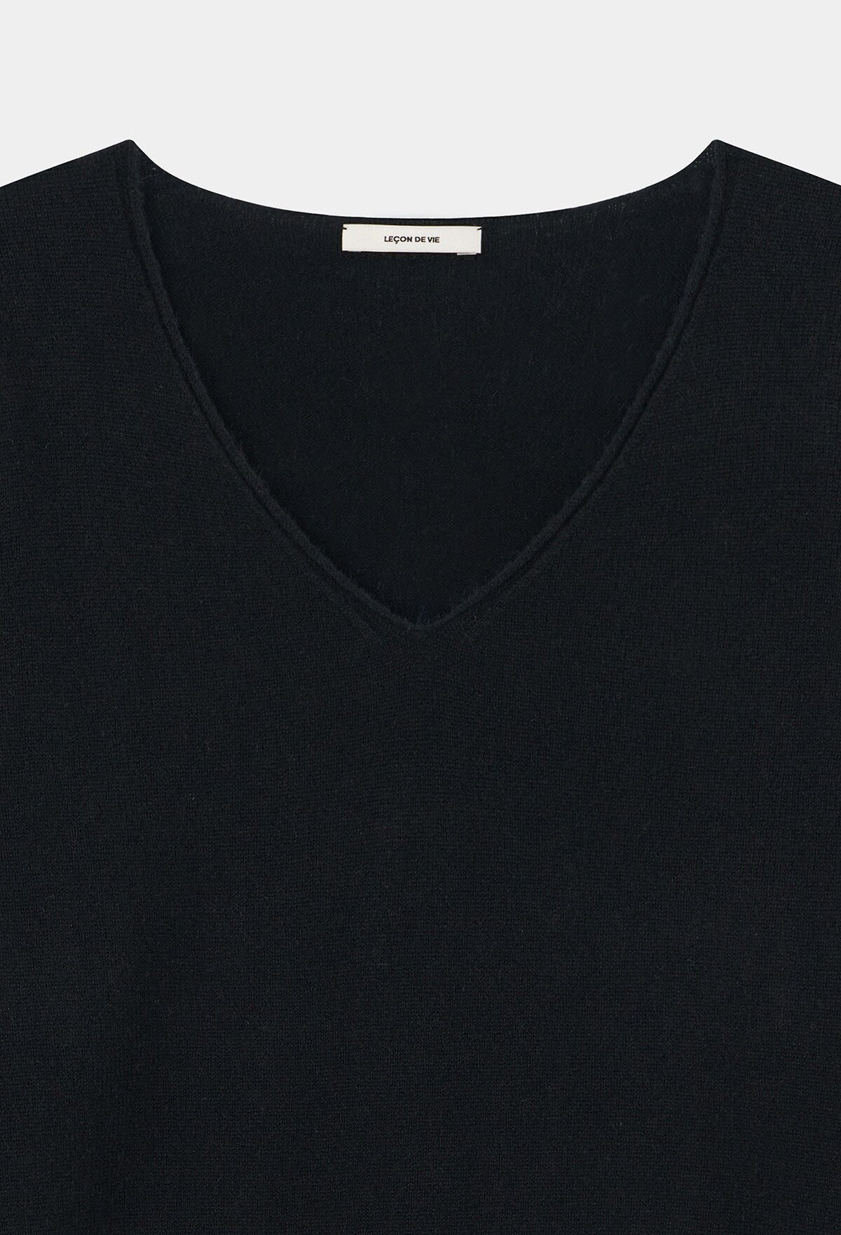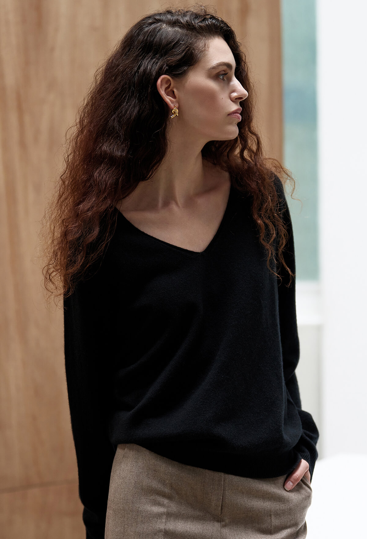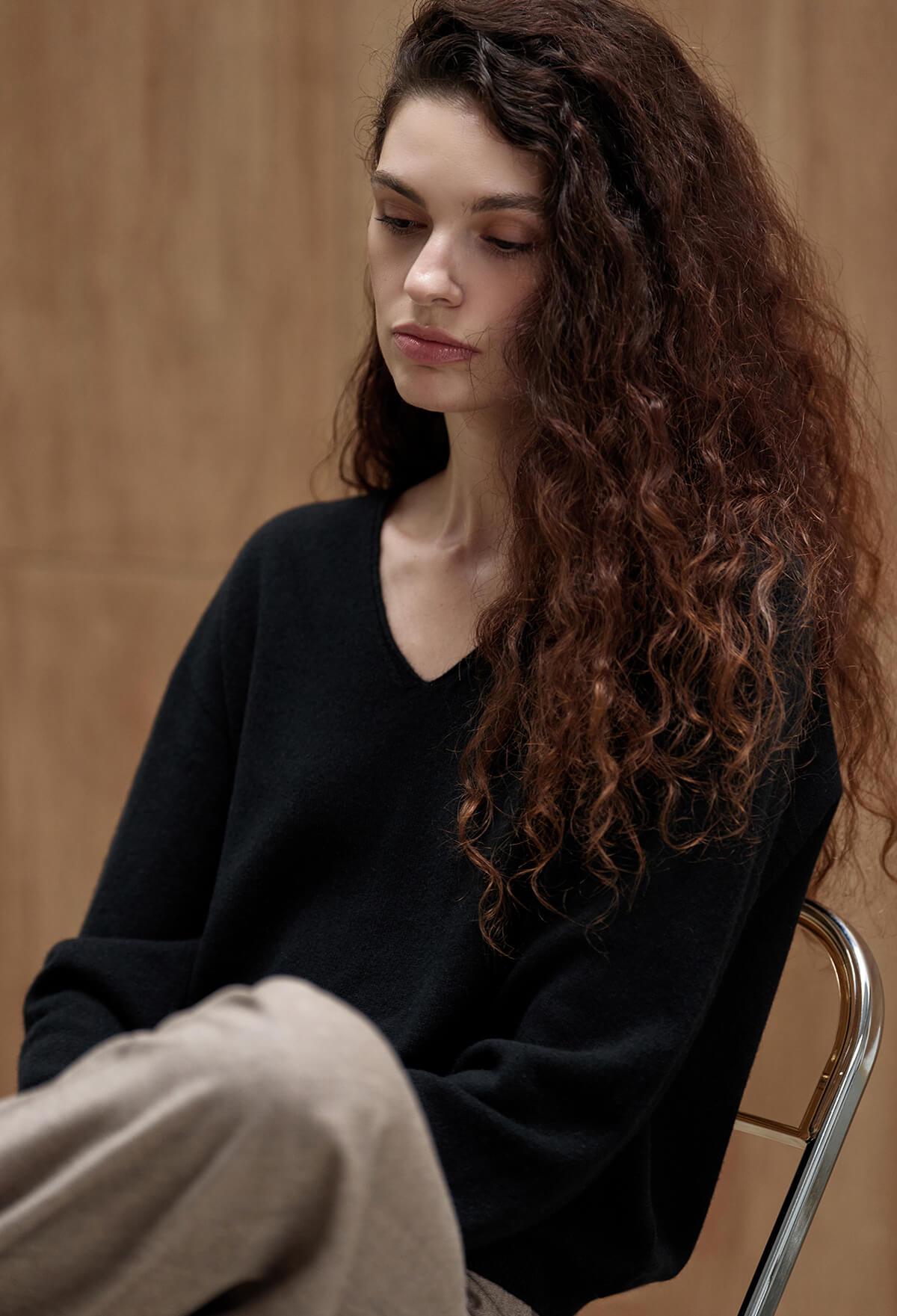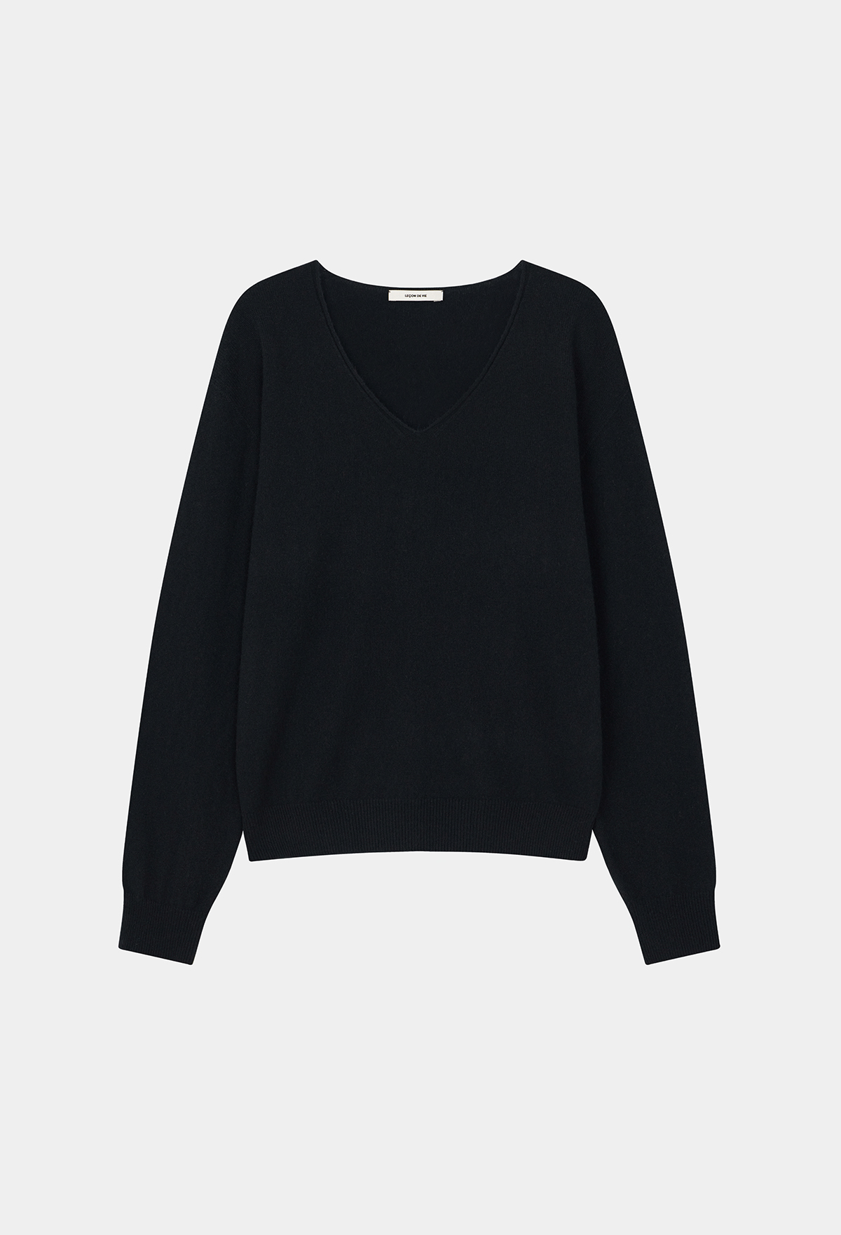말림단 처리로 볼륨감을 살린 우아한 V넥 라인은