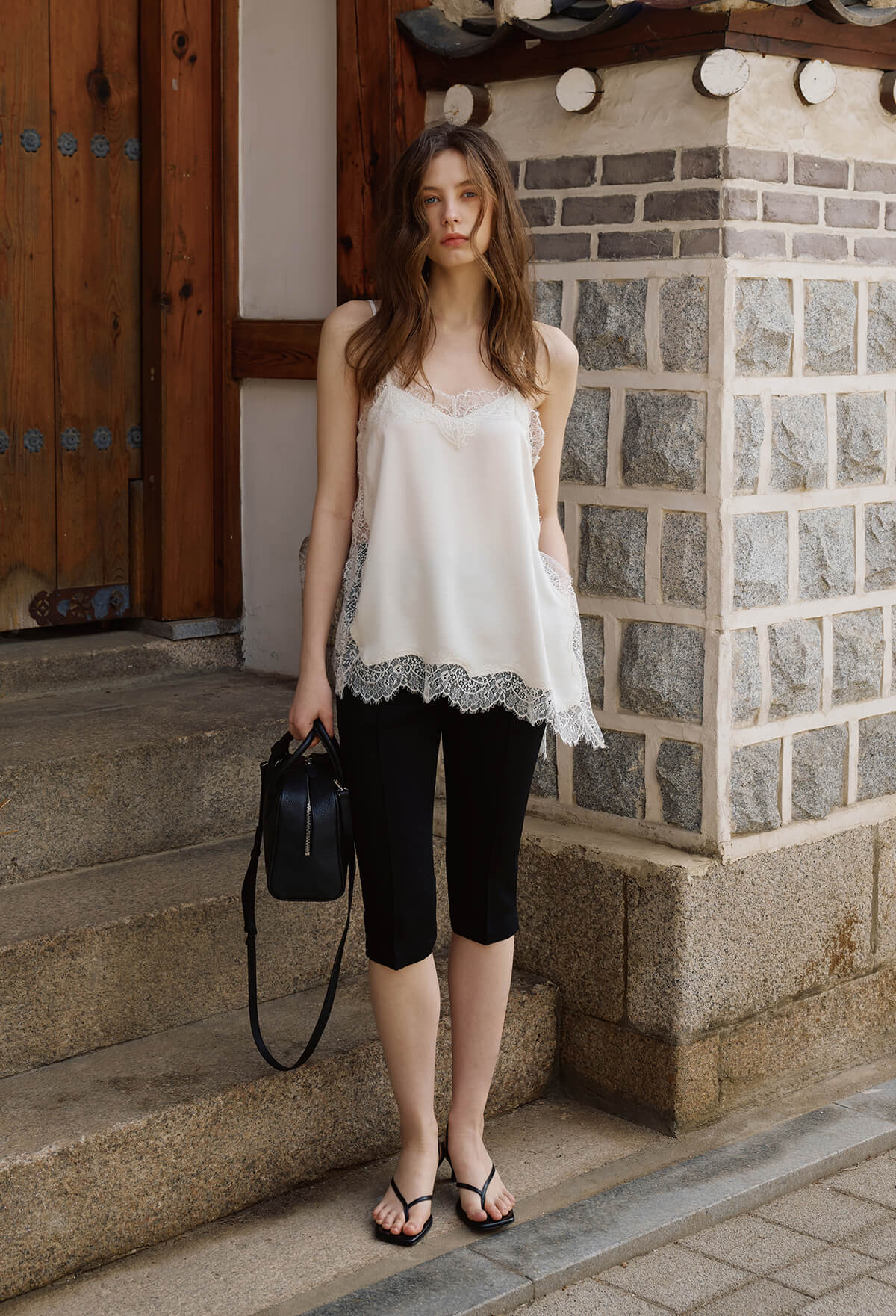 세련된 카프리 기장의 핀턱 슬릿 팬츠는
