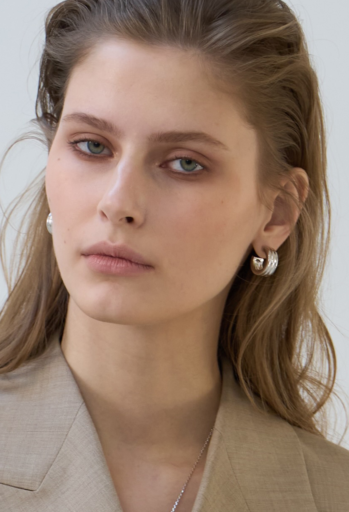 - 볼륨감 있는 후프가 연결 된 형태의 이어링