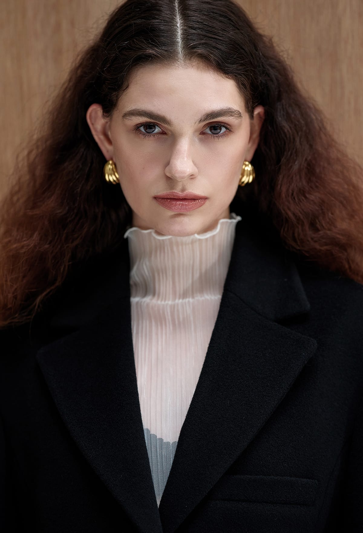 드레이프가 돋보이는 터틀넥 실루엣으로,