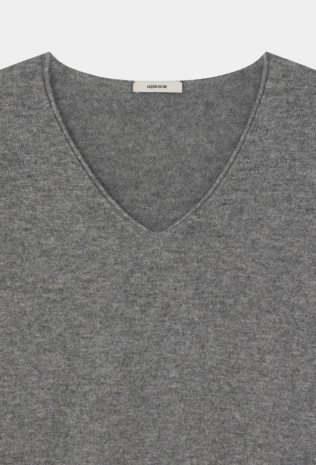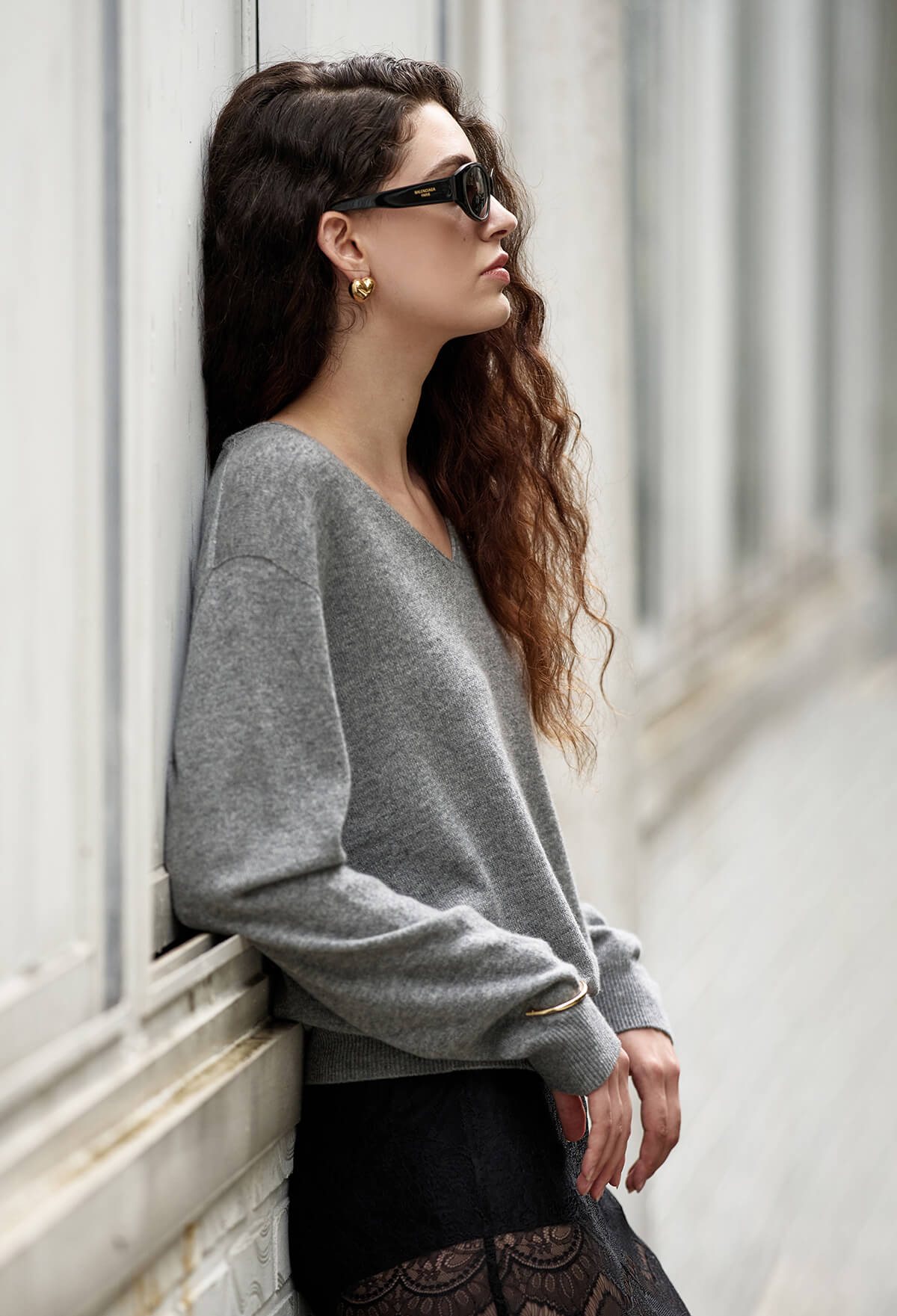 말림단 처리로 볼륨감을 살린 우아한 V넥 라인은