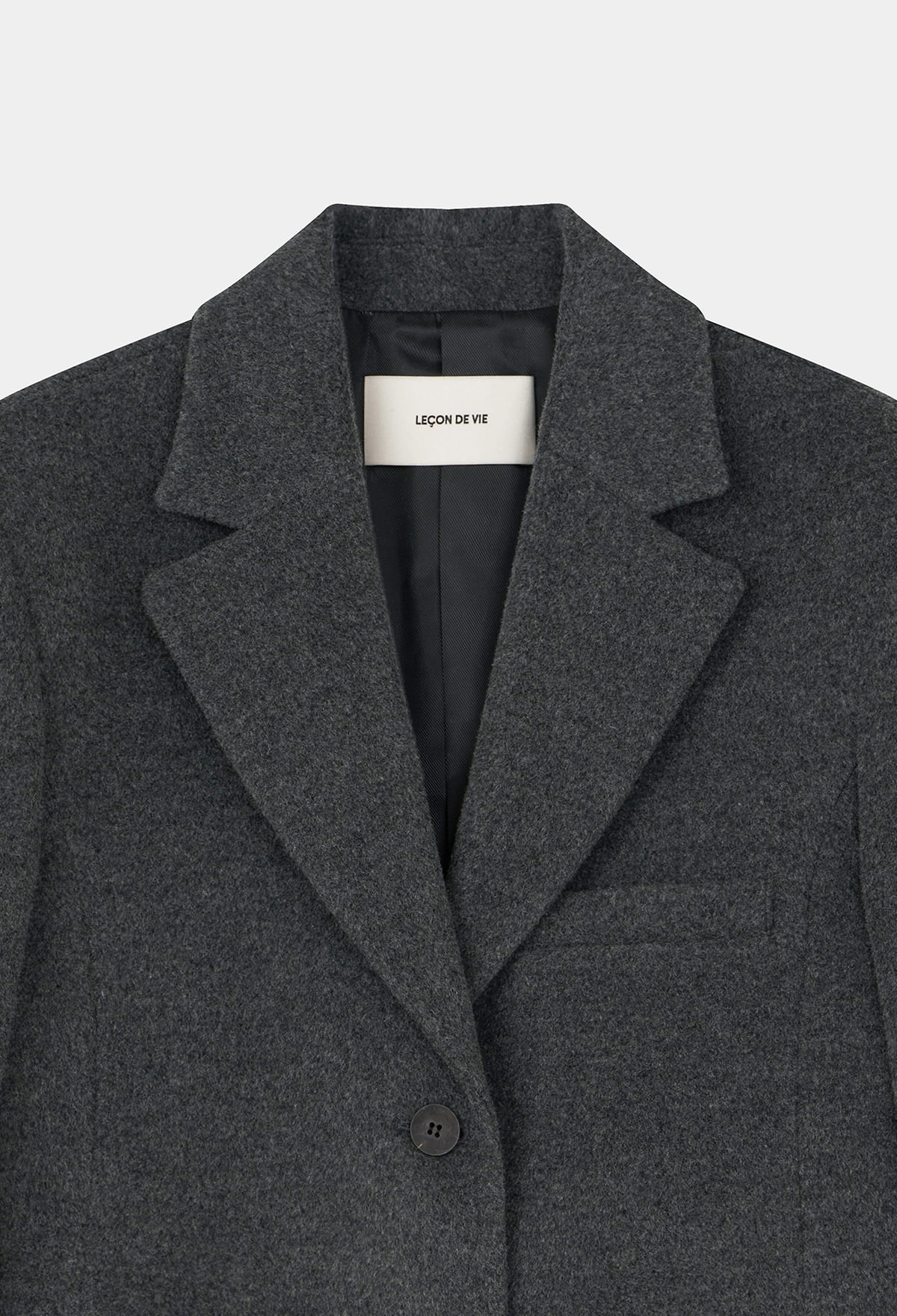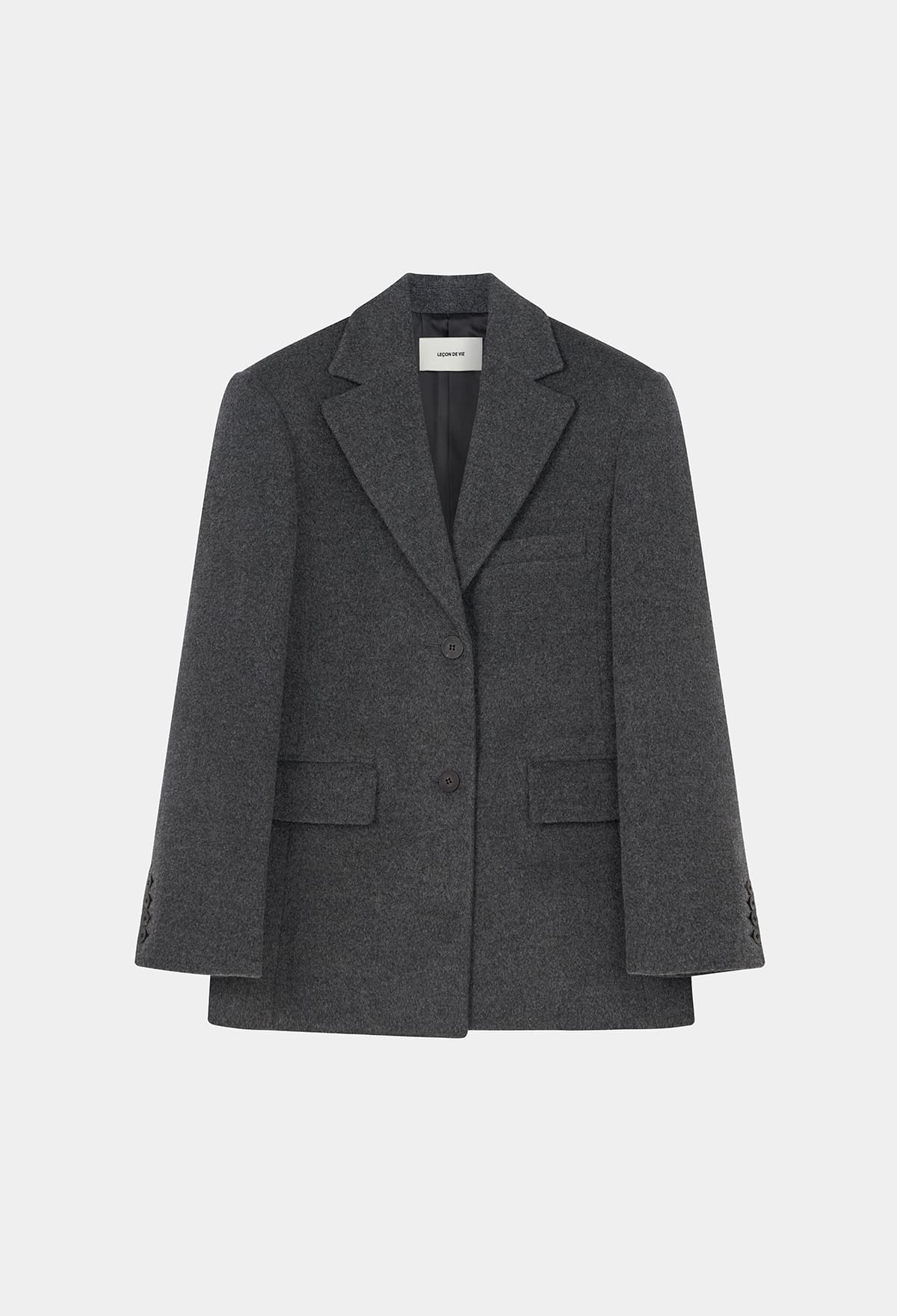싱글 브레스티드 디자인과 노치드 라펠 디테일이