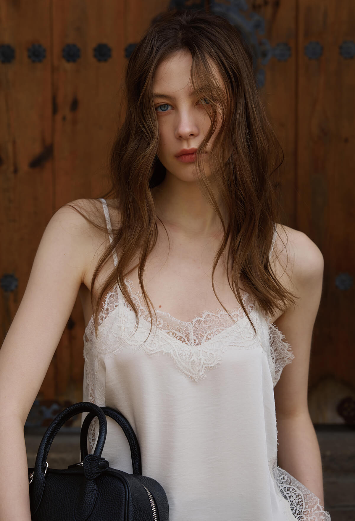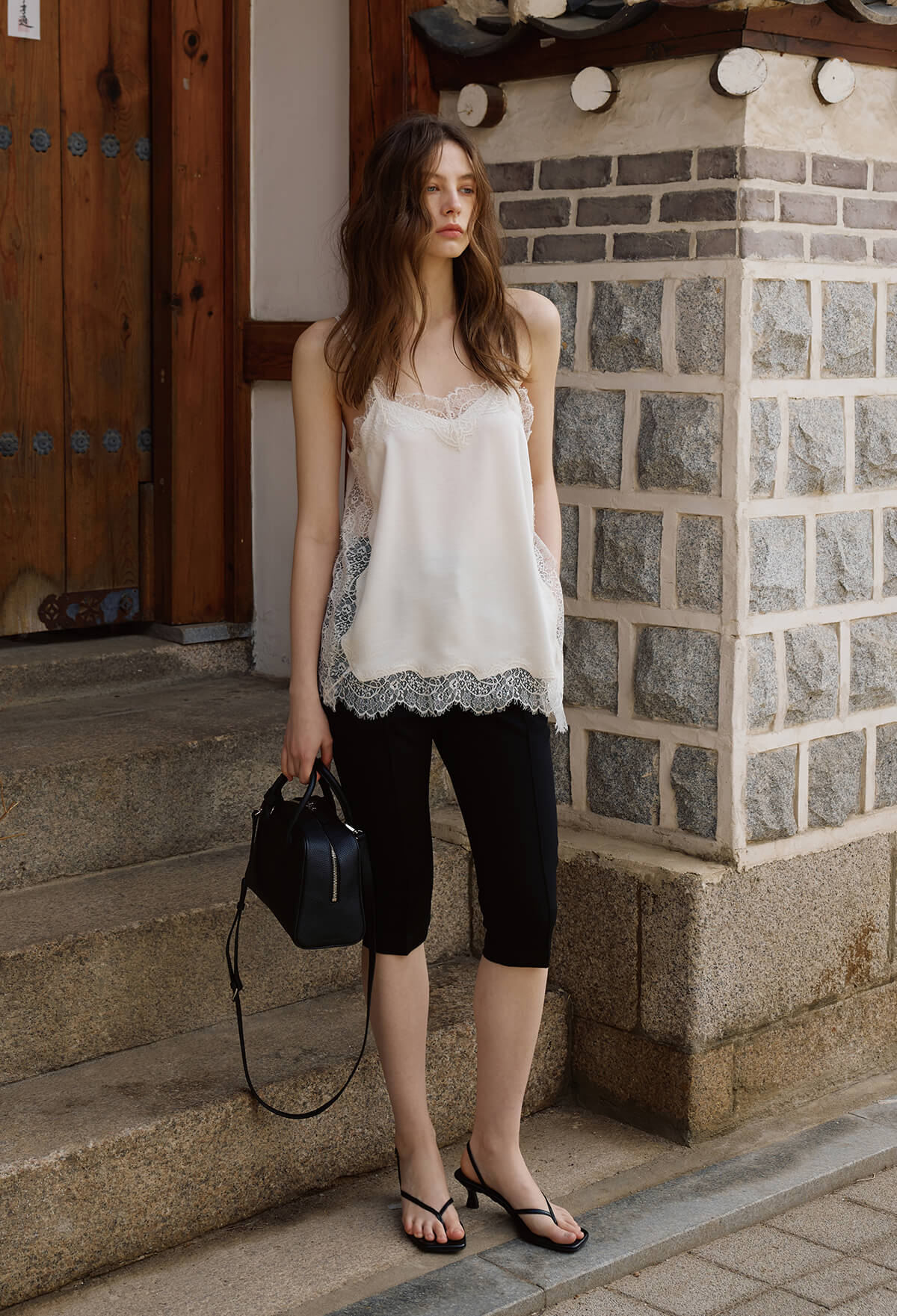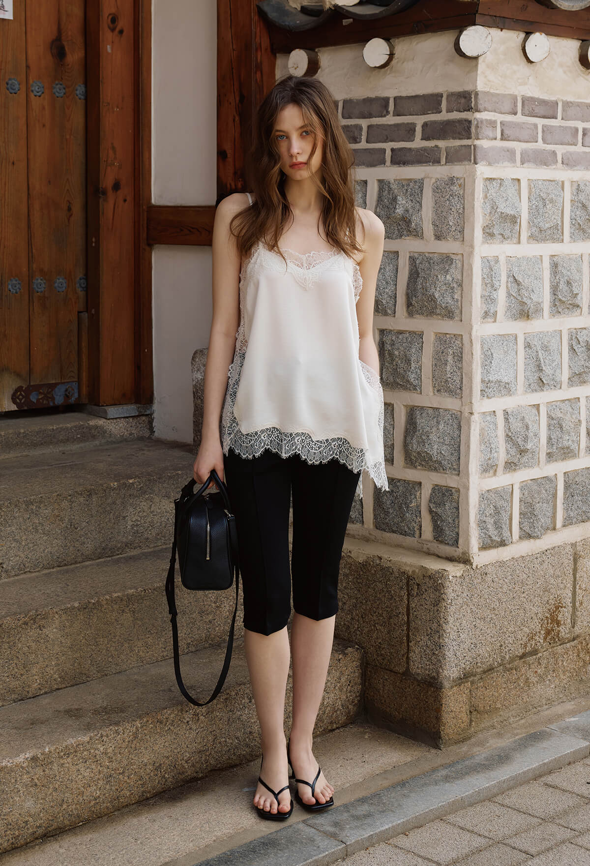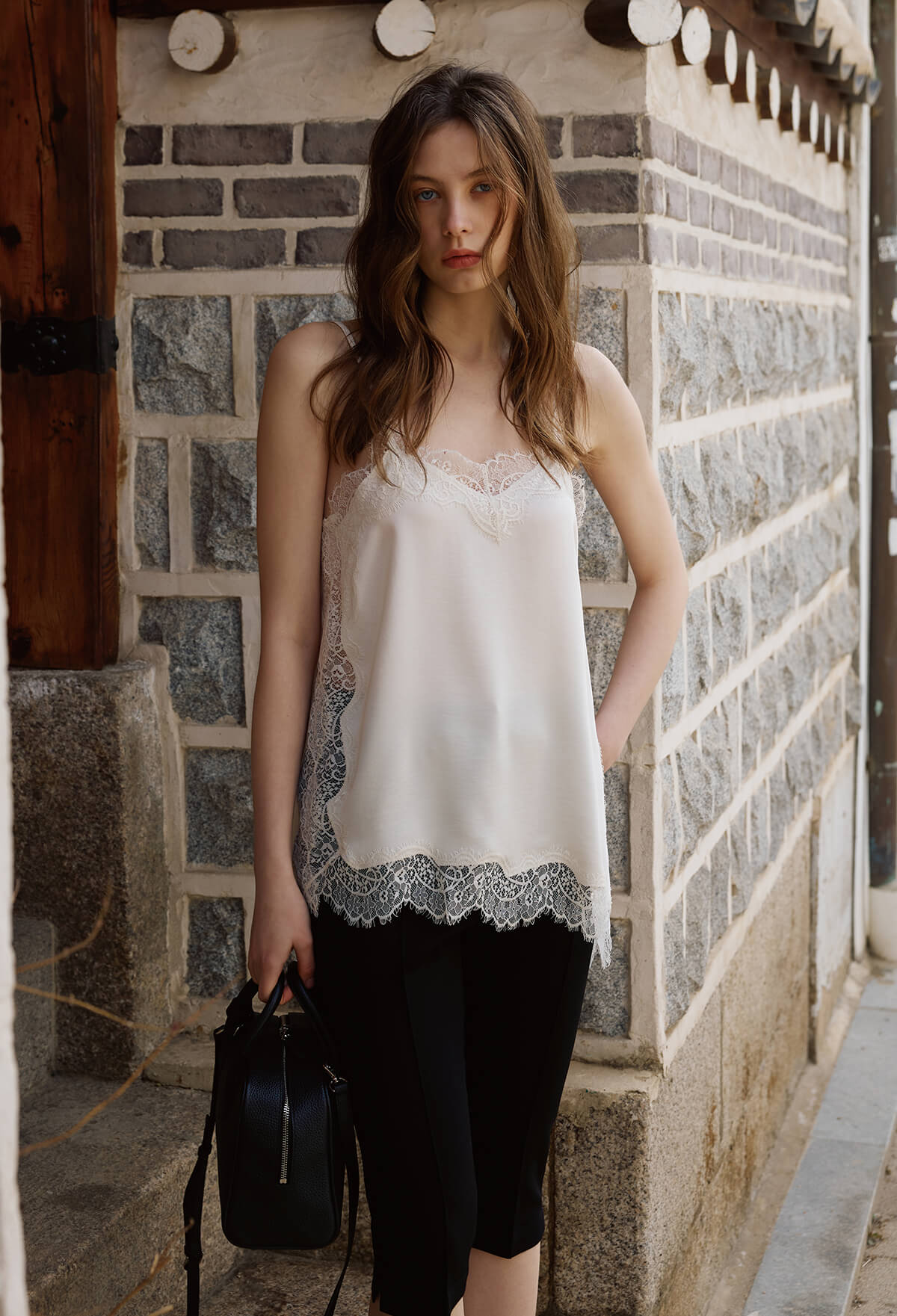 섬세한 레이스 디테일이 돋보이는 사이드 슬릿 레이스 캐미솔은